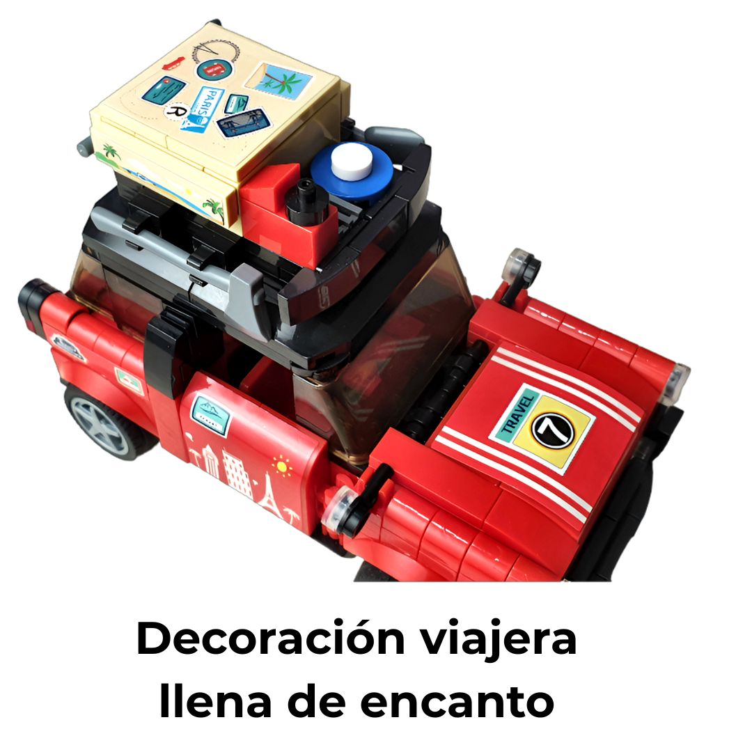 Su diseño retro, detalles de viaje en el techo y colores vibrantes lo convierten en una pieza única, ideal para pequeños aventureros y fanáticos de los autos. Compatible con otras marcas populares de bloques, este set permite integrarlo fácilmente en tus creaciones existentes.